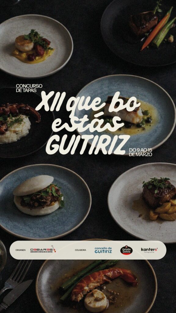 O vindeiro luns, 9 de marzo, arrincará a duodécima edición do concurso de tapas ‘Que bo estás Guitiriz’. O certame, organizado un ano máis pola Asociación de Hostalería de Guitiriz ‘Debares’, estenderase durante 7 días ata o domingo 15 de marzo.