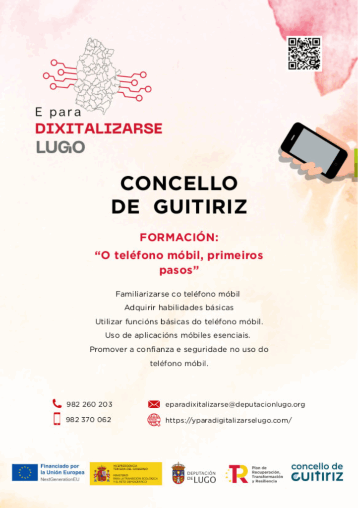 Varias parroquias do Concello de Guitiriz acollerán unha formación completamente gratuíta sobre o manexo do teléfono móbil. Trátase dunha actividade que forma parte do proxecto ‘E para dixitalizarse Lugo’ da Deputación de Lugo.